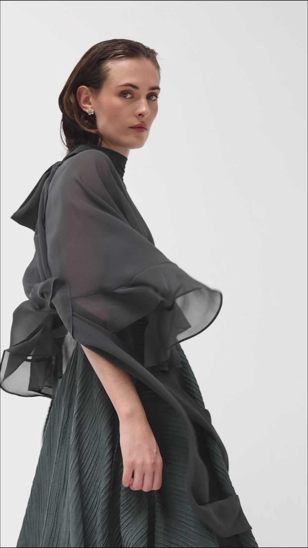 Confeccionado en mezcla de tencel y nylon, destaca por su ligereza, caída fluida y textura suave. El diseño equilibra estructura y movimiento para una silueta elegante y natural.