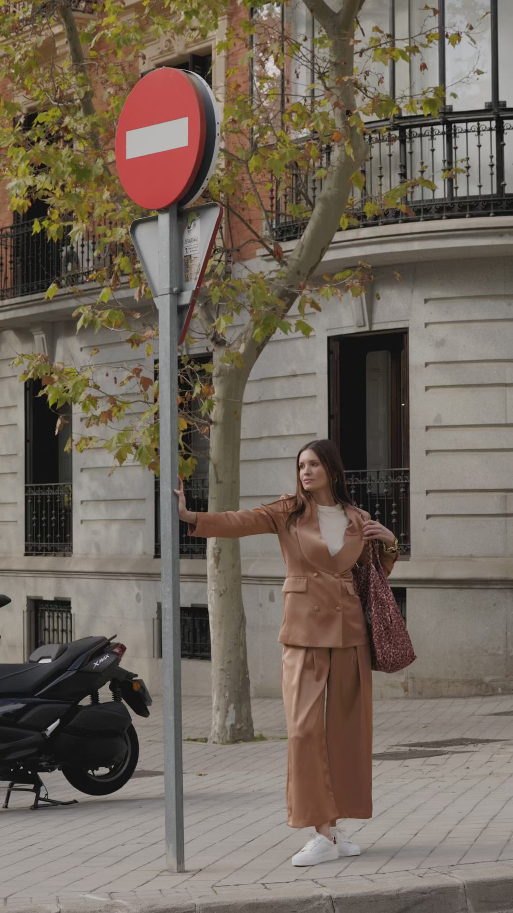Chaqueta cruzada en mikado color caramelo, una prenda sofisticada y con carácter que eleva cualquier estilismo. Su diseño con solapas curvadas y botones forrados en el mismo tejido aporta un aire distinguido y elegante, perfecto para construir un look con personalidad.